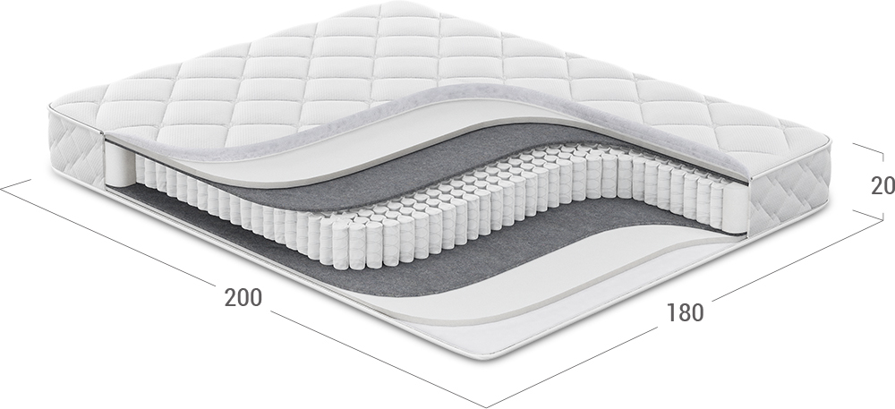 Надежно изолирует комфортные слои от соприкосновения с пружинным блоком и защищает материалы наполнения матраса от износа.