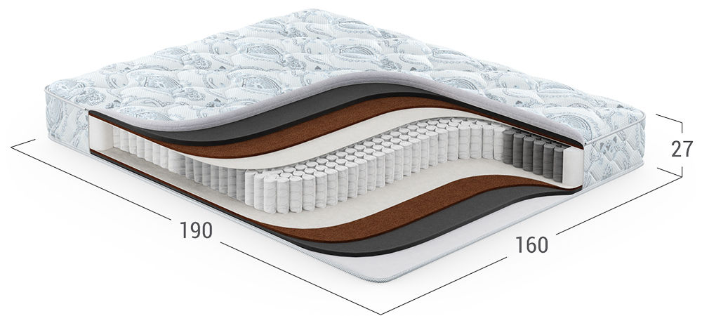 Значительно повышает жесткость спального места, обеспечивает равномерную поддержку тела во время сна. Полностью состоит из натуральных материалов. Добавляет прочности всей конструкции матраса.