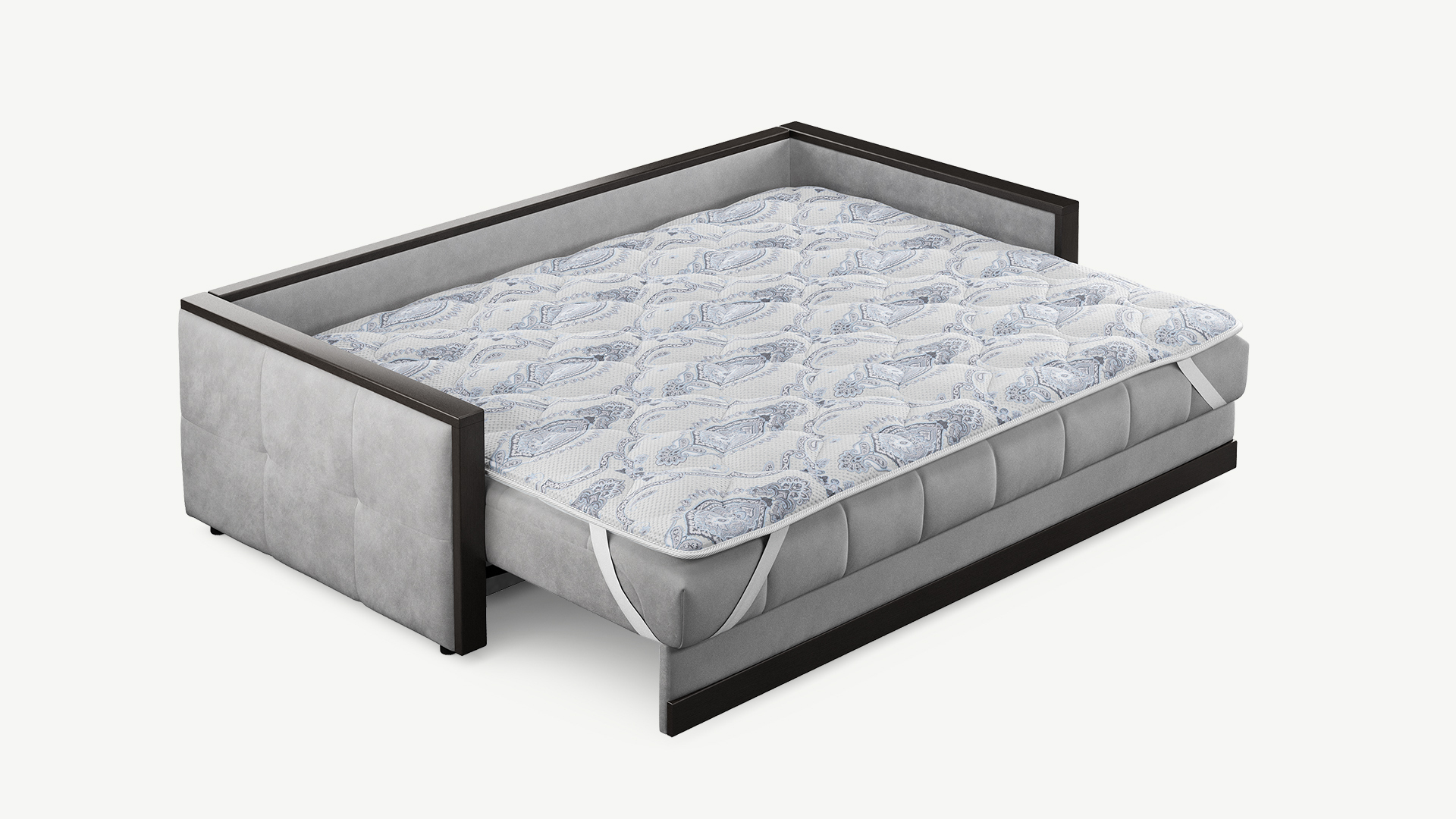 Топпер можно использовать как на диване, так и на матрасе. Фиксация на поверхности спального места осуществляется с помощью широких резинок в четырех угловых точках.