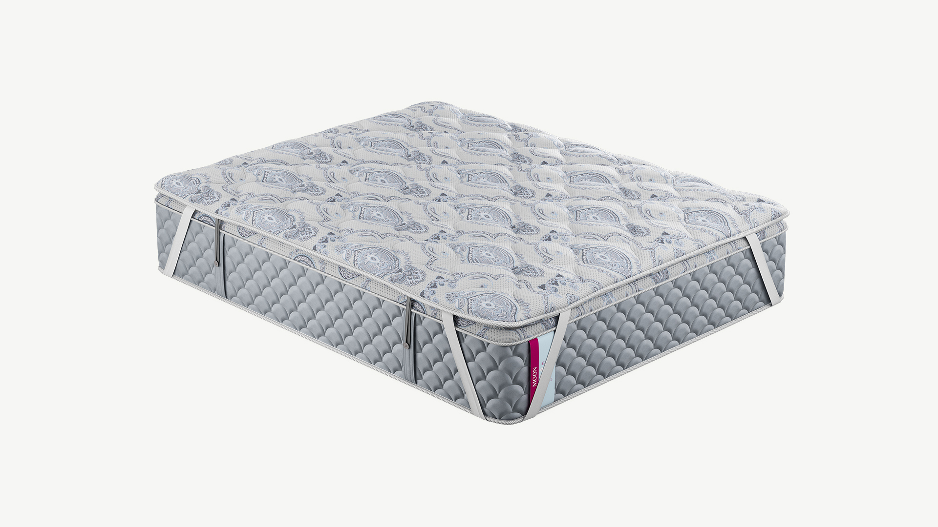 Дополнительно на топпере предусмотрены эластичные петли — для матрасов MOON в комплектациях Comfort и Prestige, оснащенных системой крепления на пуговицы по бокам.
