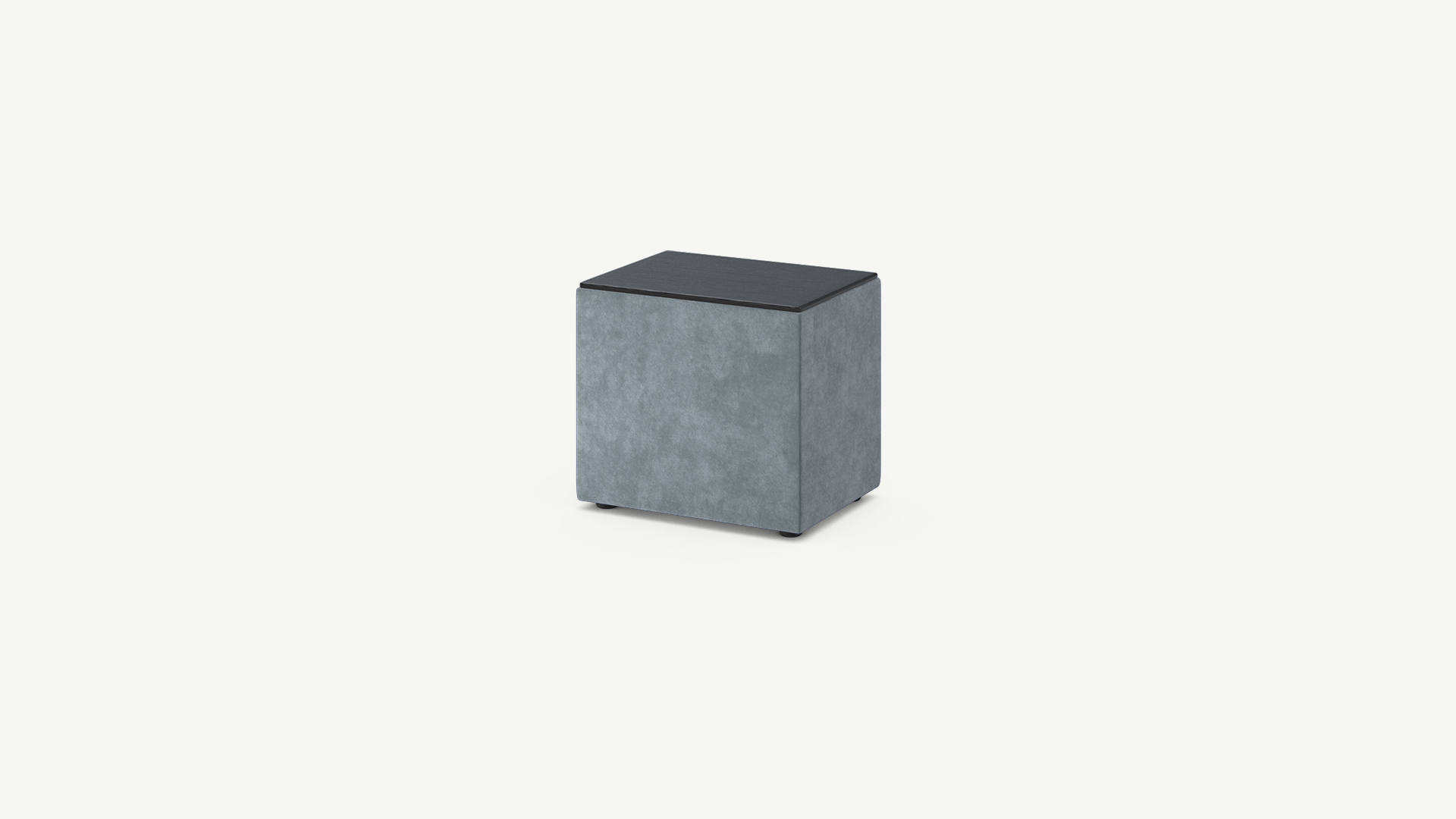 Обратная сторона тумбы, выполненная в обивочной ткани, позволяет ставить ее в центре комнаты и зонировать пространство.