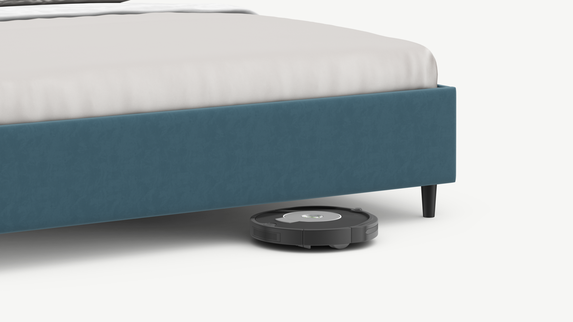 Благодаря высоким опорам под кроватью проходит робот-пылесос и легко проводится влажная уборка, что обеспечивает чистоту и порядок в доме.