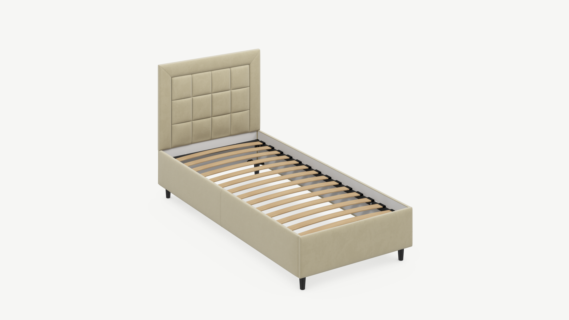Рама, изголовье и царги надежно крепятся между собой, обеспечивая прочность и устойчивость кровати.