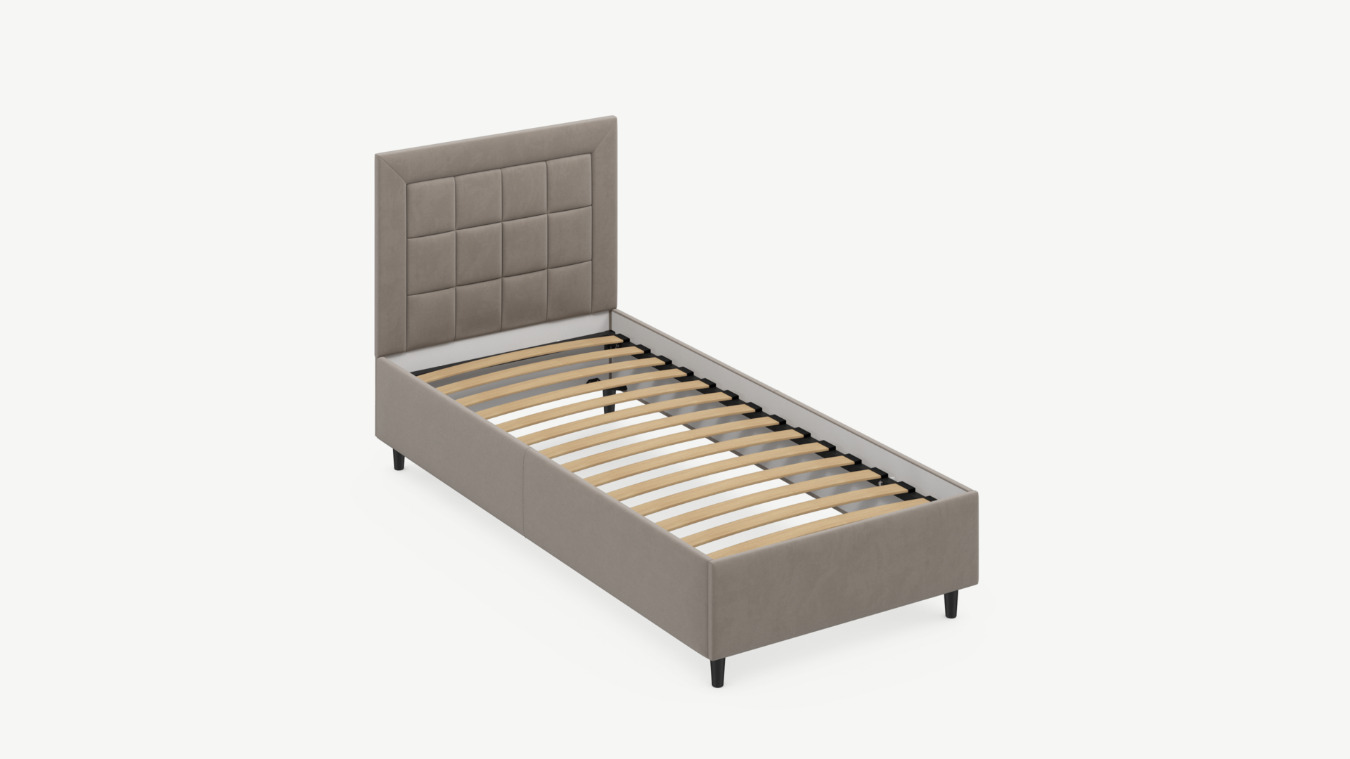 Рама, изголовье и царги надежно крепятся между собой, обеспечивая прочность и устойчивость кровати.