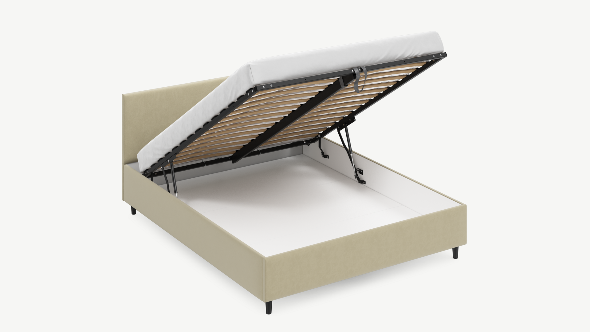 • Скрытая под основанием вместительная емкость без внутренних перегородок позволяет использовать всю площадь подкроватного пространства для хранения вещей.