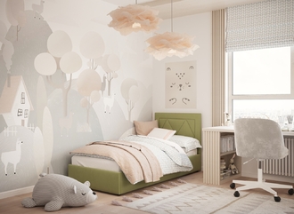 • Скрытая под основанием вместительная емкость без внутренних перегородок позволяет использовать всю площадь подкроватного пространства для хранения вещей.
