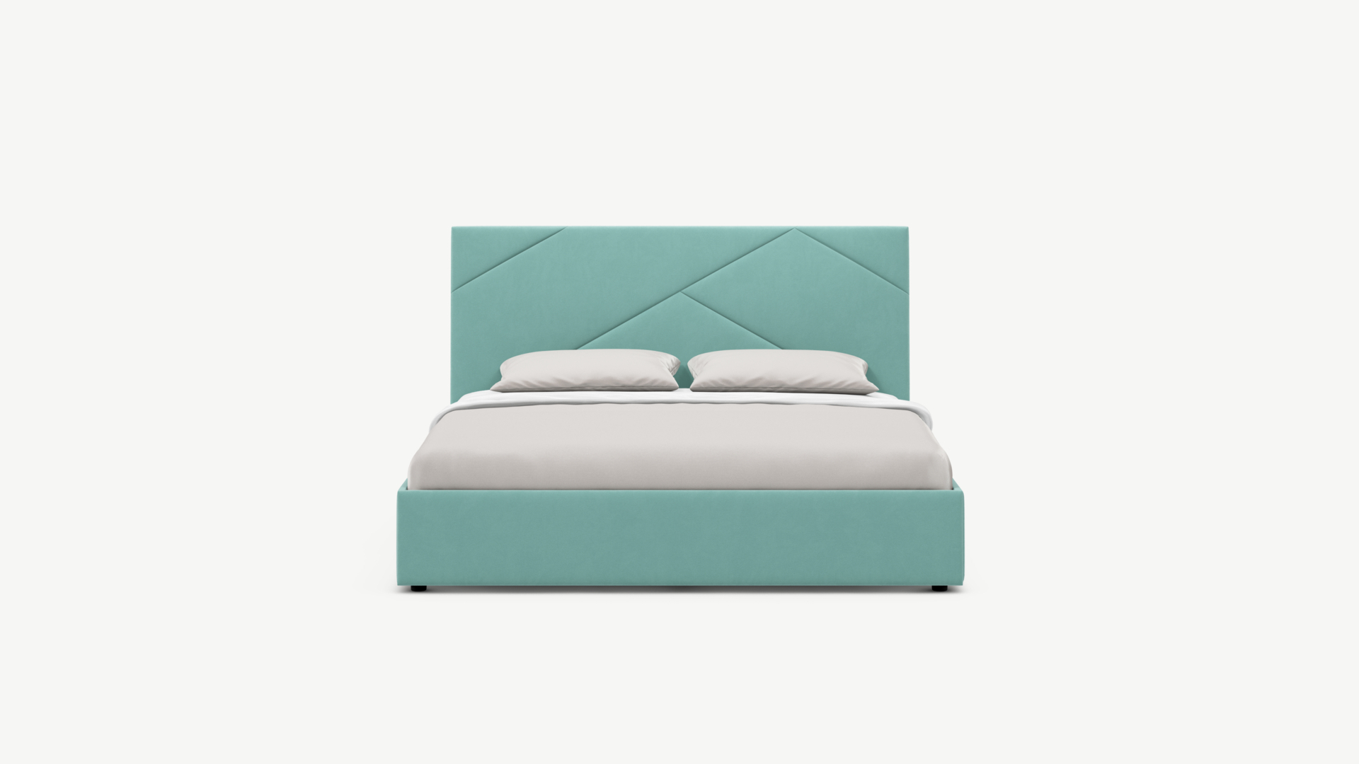 MOON FAMILY 1257 привлекает внимание оригинальным исполнением: широкие полосы ткани эффектно пересекают периметр изголовья, создавая на нем графический орнамент. Элегантным и практичным акцентом служат скрытые карманы, расположенные по его углам. Лаконичные формы объемных царг создают единый гармоничный образ и фокусируют внимание на центральном текстурном элементе кровати.