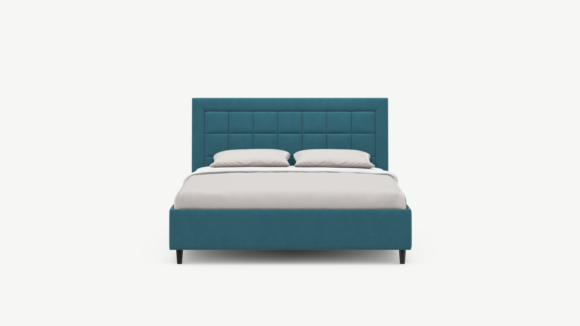 Изголовье декорировано рельефным рисунком стежки в крупный квадрат, получившим особую фактуру за счет глубины шва.
