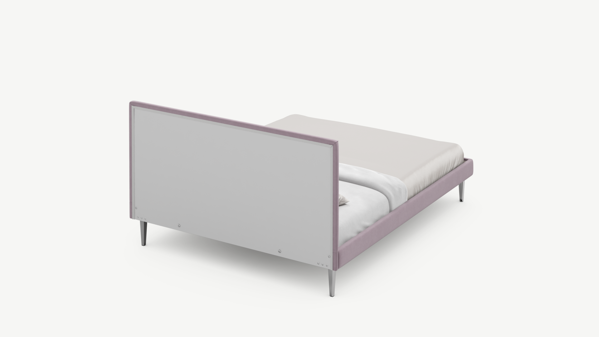 Кровать MOON FAMILY 1256 демонстрирует безупречный баланс изящных пропорций. Лаконичное изголовье, узкие царги и высокие опоры создают эффектный образ, привносящий в пространство спальни стильный и яркий акцент.