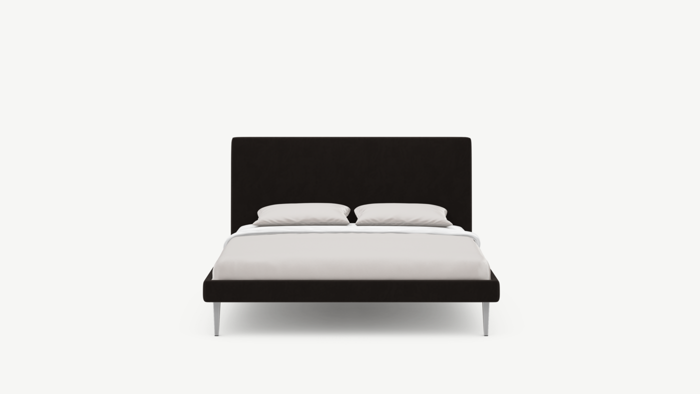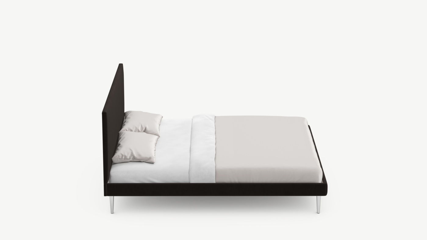 Кровать MOON FAMILY 1256 демонстрирует безупречный баланс изящных пропорций. Лаконичное изголовье, узкие царги и высокие опоры создают эффектный образ, привносящий в пространство спальни стильный и яркий акцент.