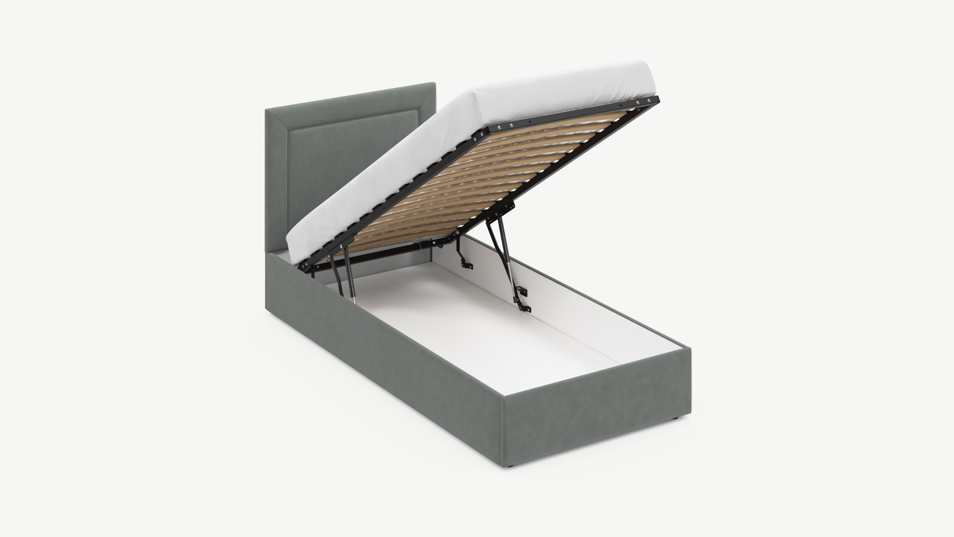 Регулируемый подъемный механизм с газовыми амортизаторами позволяет плавно и бесшумно поднимать и опускать спальное место.
