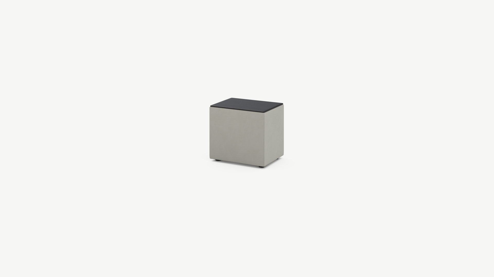 Обратная сторона тумбы, выполненная в обивочной ткани, позволяет ставить ее в центре комнаты и зонировать пространство.