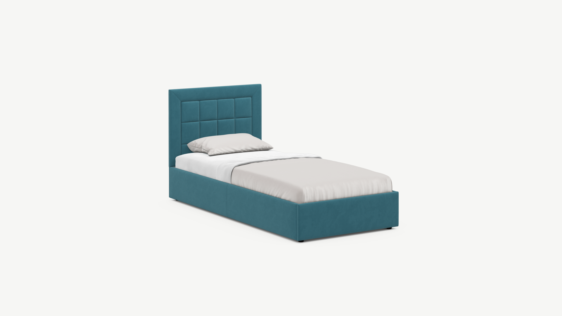 Изголовье декорировано рельефным рисунком стежки в крупный квадрат, получившим особую фактуру за счет глубины шва.