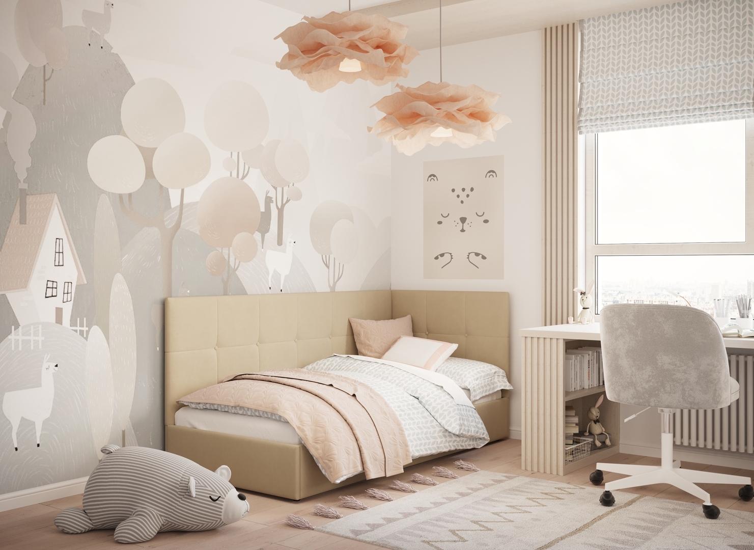 MOON FAMILY 1261 объединяет функциональность и стиль, создавая гармоничное пространство для отдыха и творчества. Кровать доступна в левостороннем и правостороннем исполнении, что позволяет легко адаптировать ее под любые интерьерные особенности.
