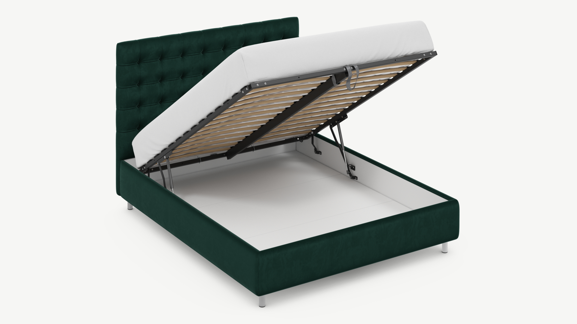 • Скрытая под основанием вместительная емкость без внутренних перегородок позволяет использовать всю площадь подкроватного пространства для хранения вещей.