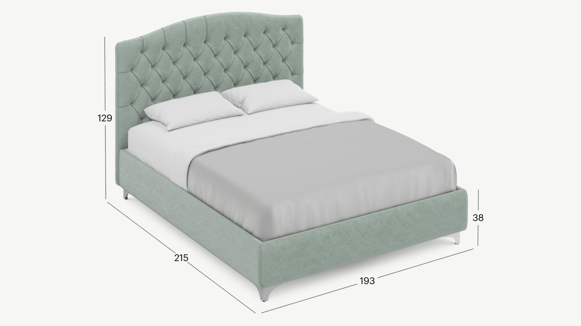 Кровать MOON 1157 создает ощущение праздника. Фигурное изголовье с классической каретной стяжкой формирует торжественный образ кровати, привнося в интерьер элементы дворцового стиля и роскоши.